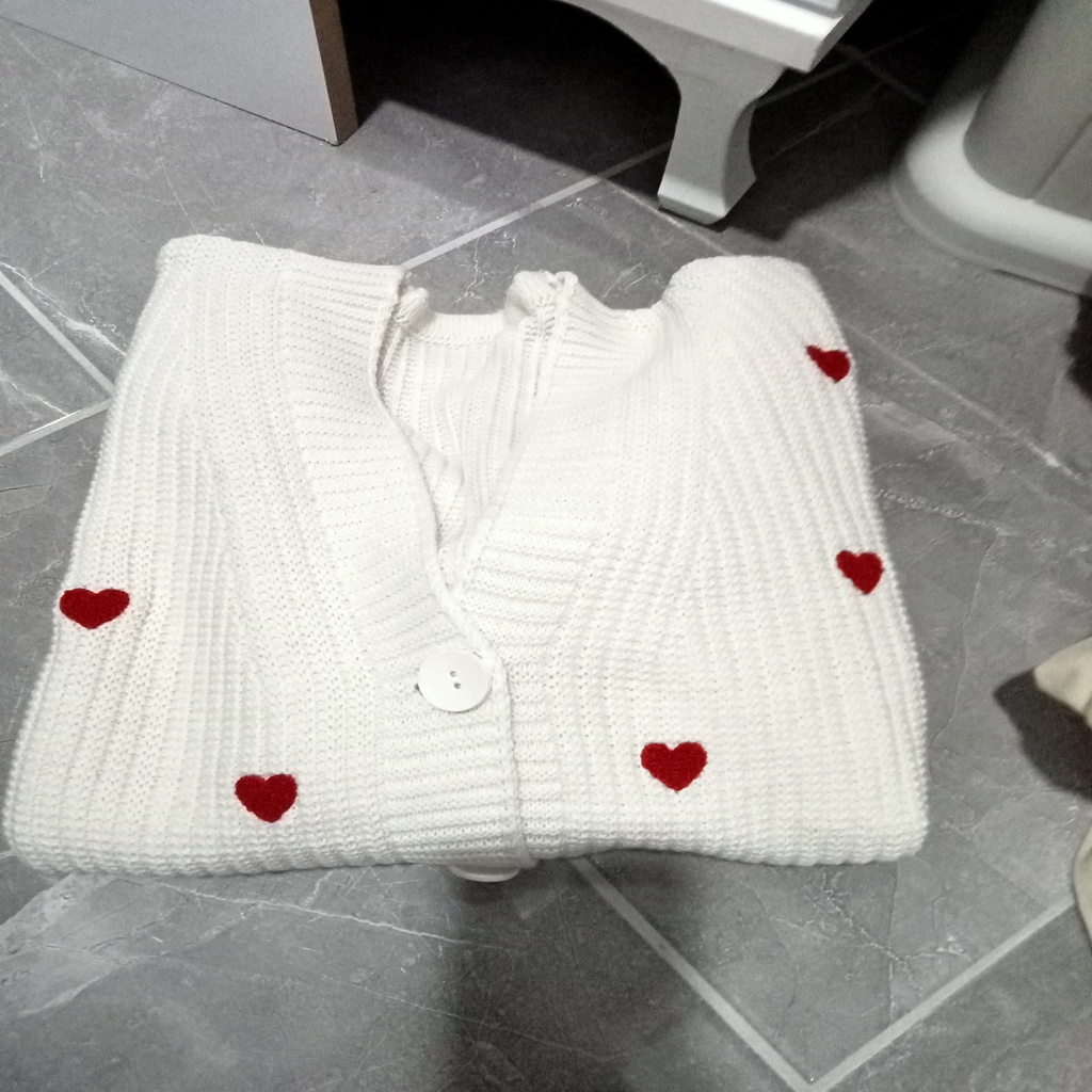 Kadın Kalp Nakışlı Triko Hırka Kremkırmızı TZL-P-00012817