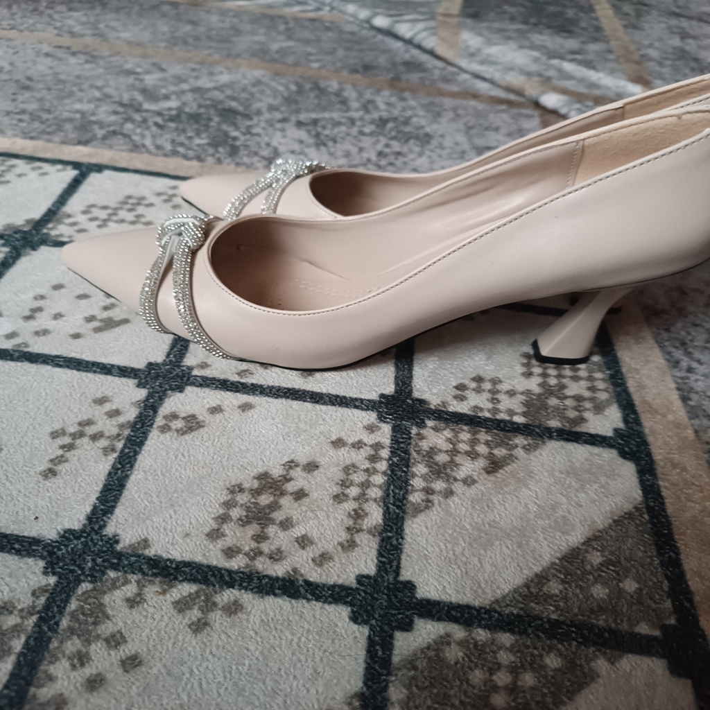 Kadın Taşlı Topuklu Ayakkabı Bej TZL-P-00006563