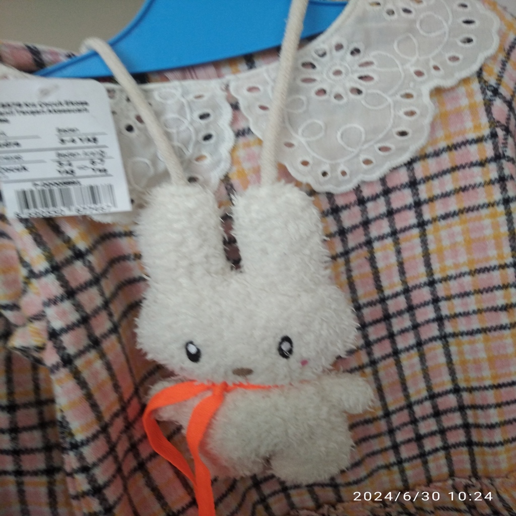 Kız Çocuk Ekose Desenli Tavşan Aksesuarlı Elbise Pudra TZL-P-00005891